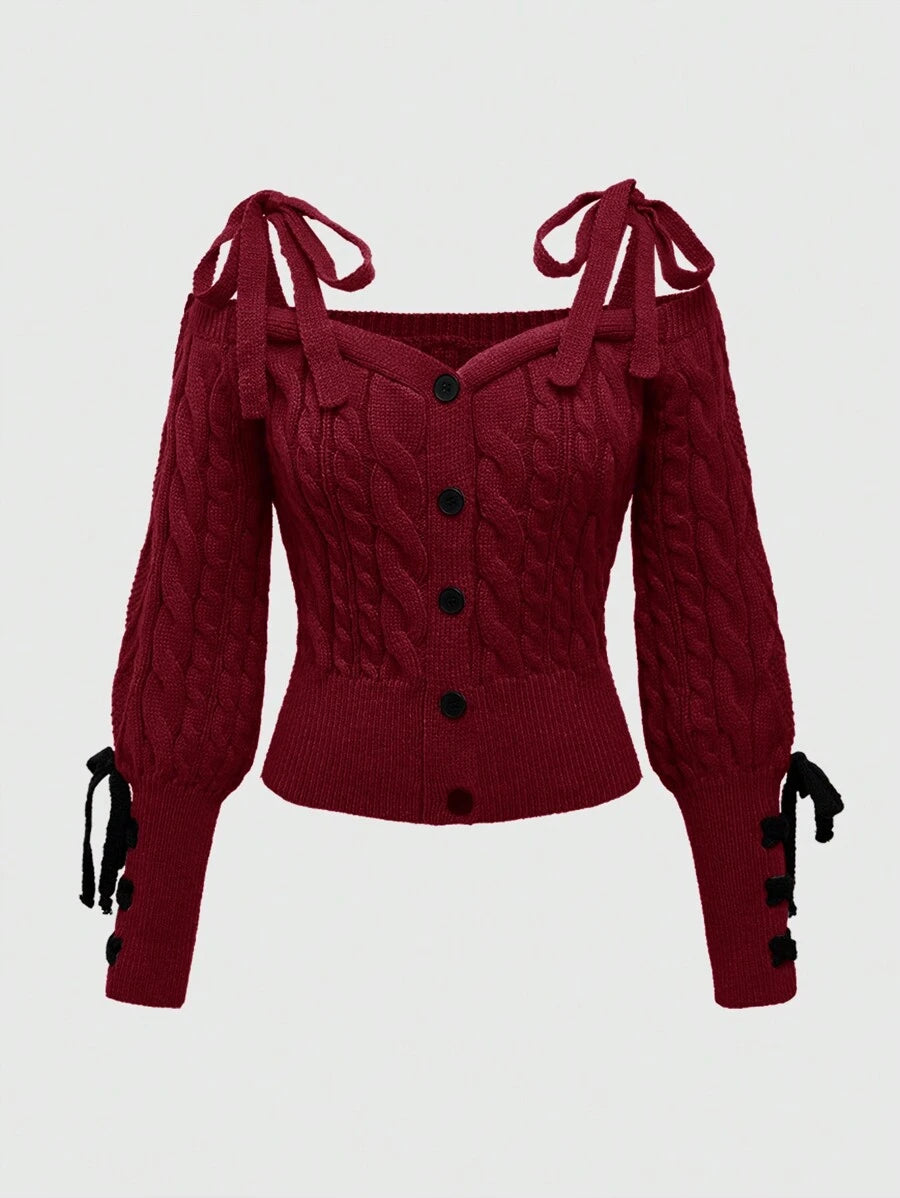 Witchy Rendez-Vous Off Shoulder Puff Sleeve Cropped Cardigan
