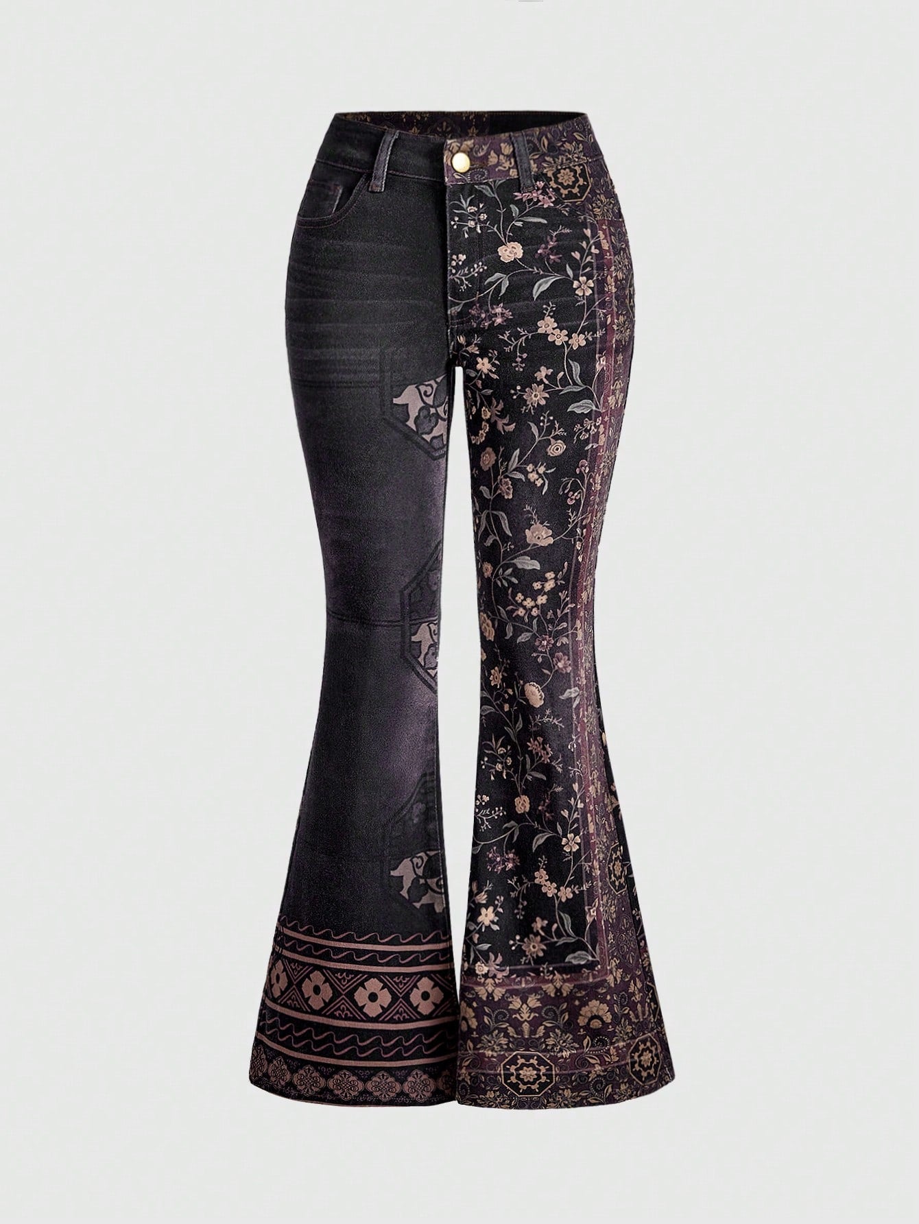 Witchy Spring Magick Floral Print Flare Jeans