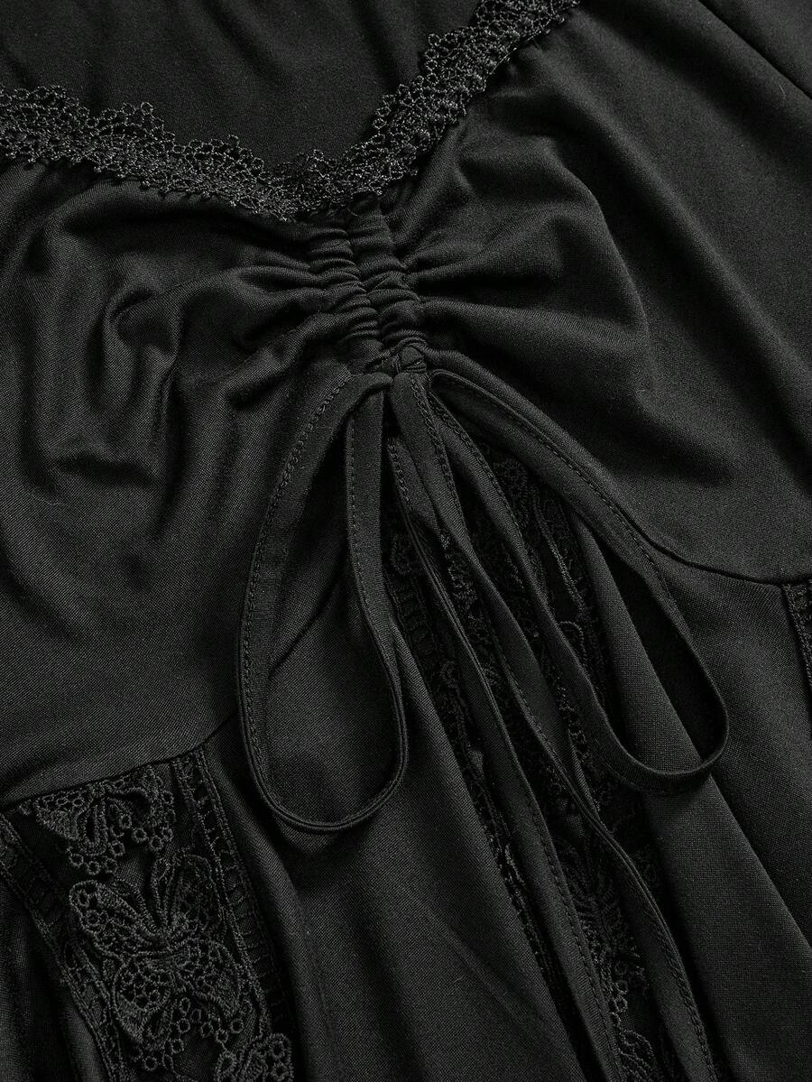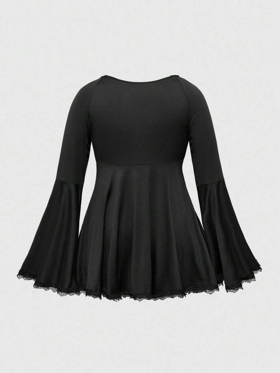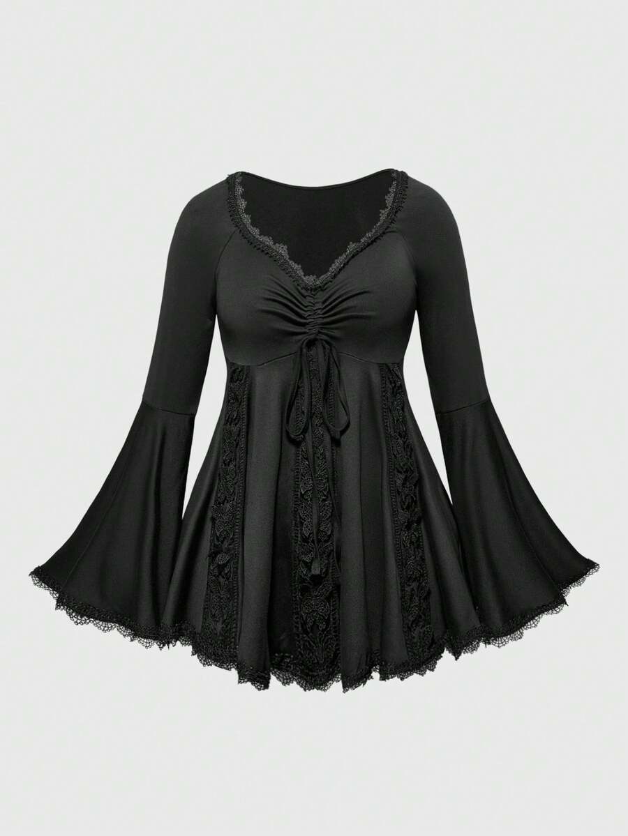 Witchy Goth PLUS Lace Trim Hollow Out Flare Sleeve Top
