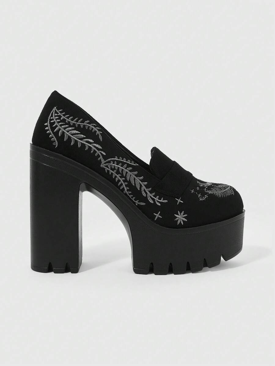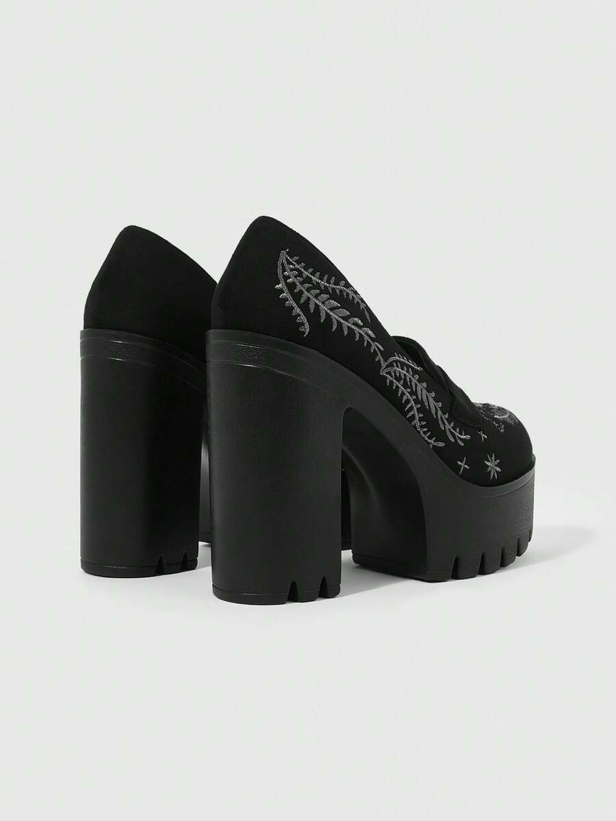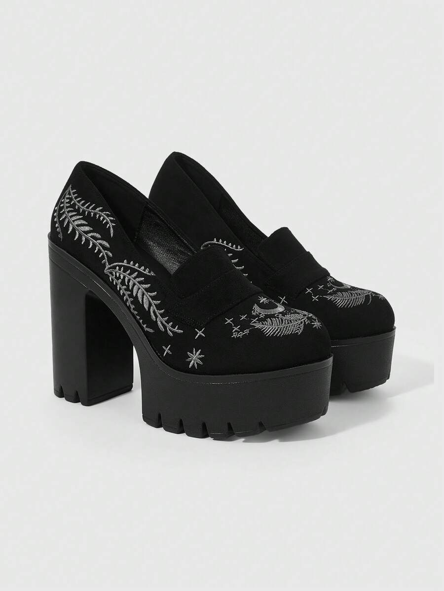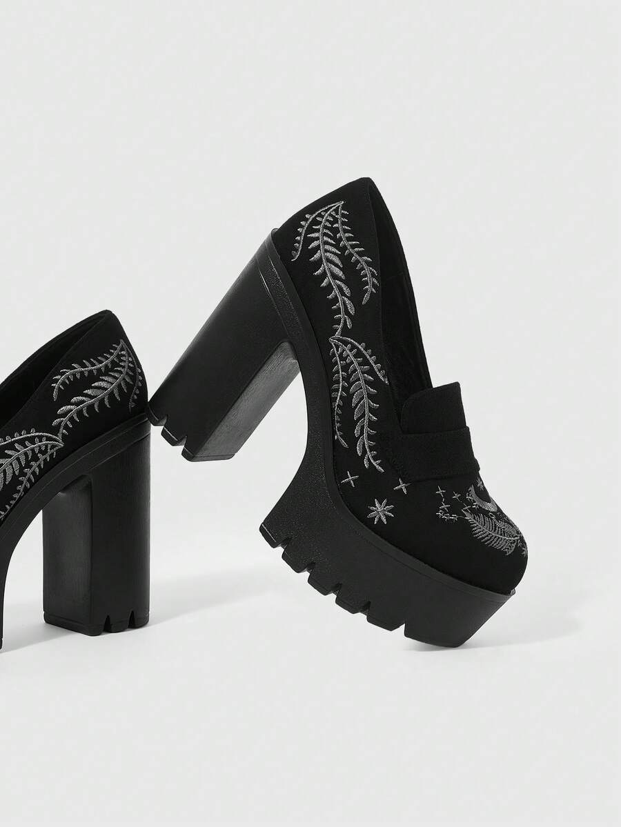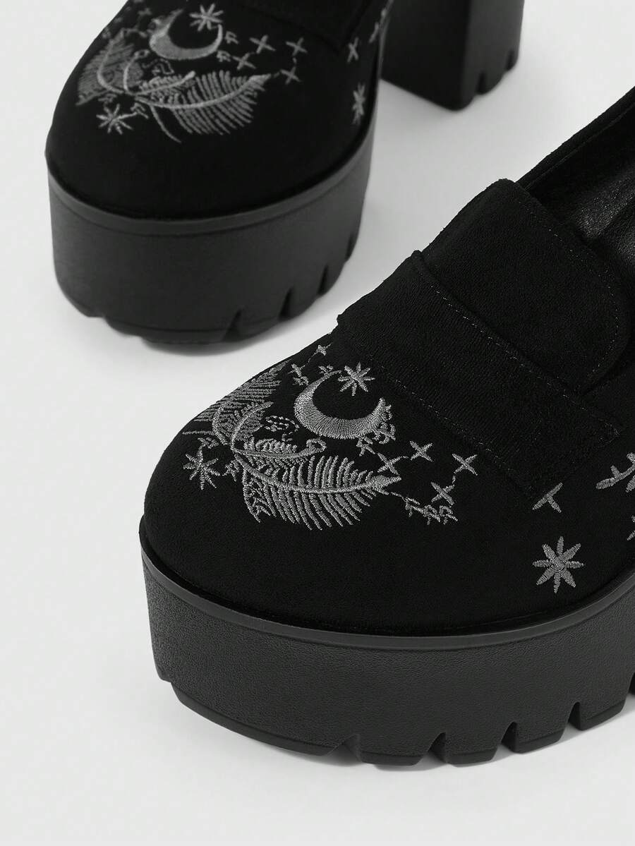 Witchy Goth Suede Thick Sole Chunky Heel Pumps