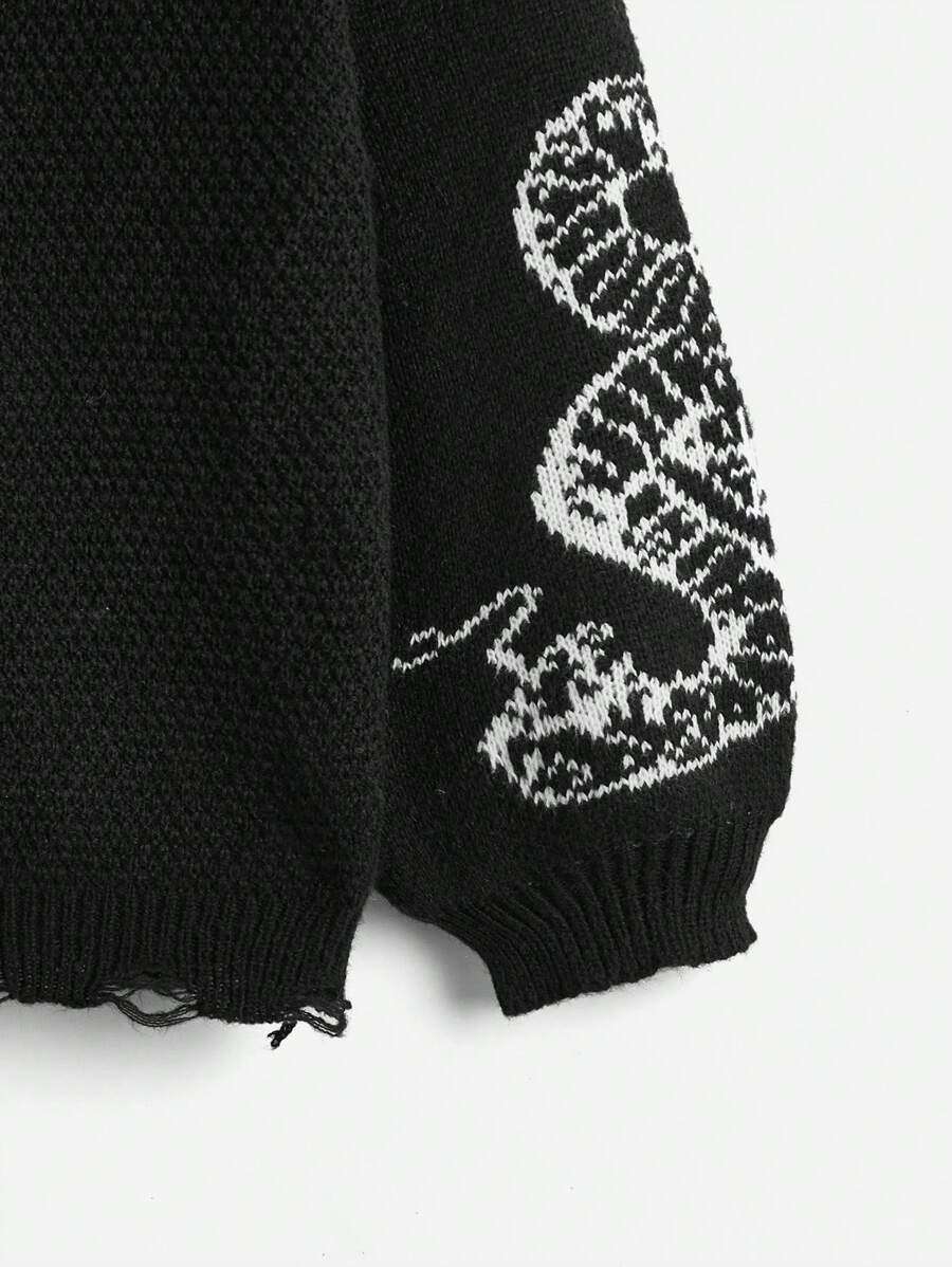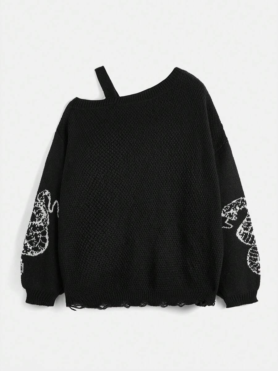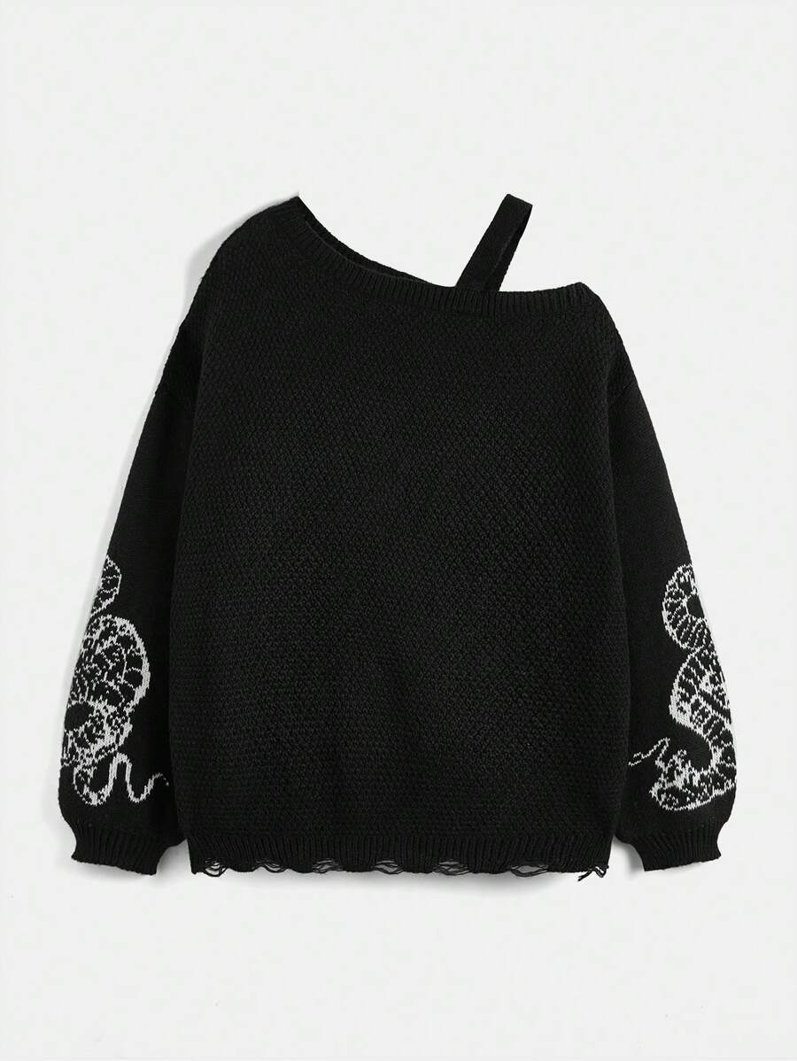 Witchy Gothic Asymmetrical Neck Snake Design Sweater